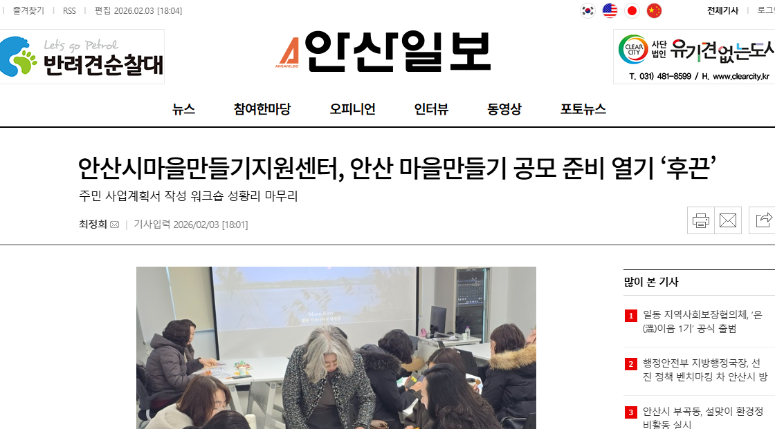 안산시마을만들기지원센터는 2월 2일부터 3일까지 이틀간 마을공동체종합지원센터 3층 대회의실에서 ‘2026 안산시마을만들기 주민공모 사업계획서 작성 워크숍’을 진행했다.