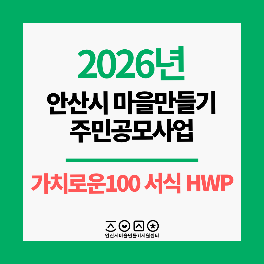 [가치로운100 보조금 양식 hwp] 2026년 안산시 마을만들기 주민공모사업 양식 다운받아서 활용할 수 있습니다. …
