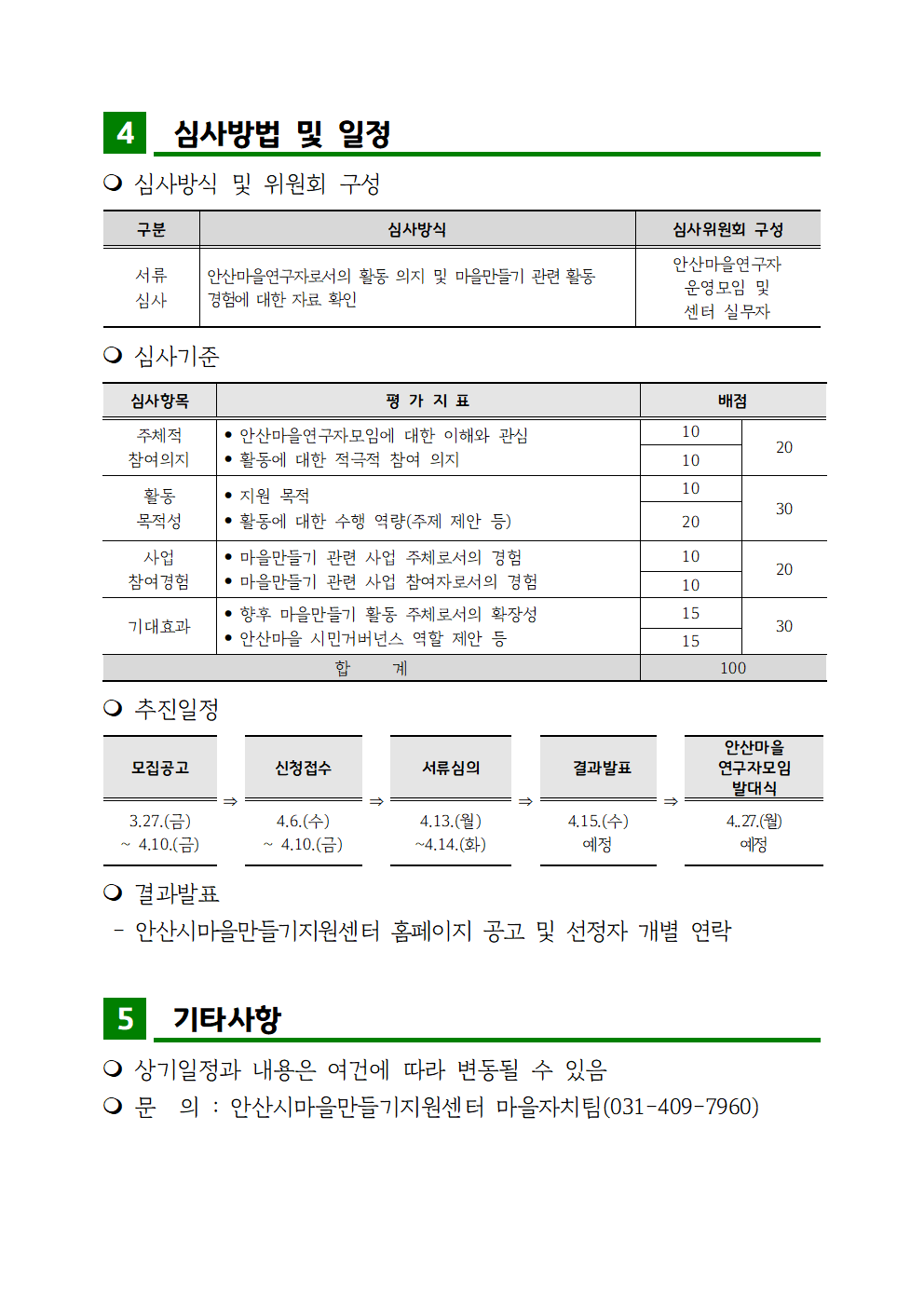 접수방법 : 안산시마을만들기지원센터 홈페이지(http://www.happyansan.or.kr) 지원서 양식 다운로드 후, 이메일 접수(ansanmaeul@naver.com)