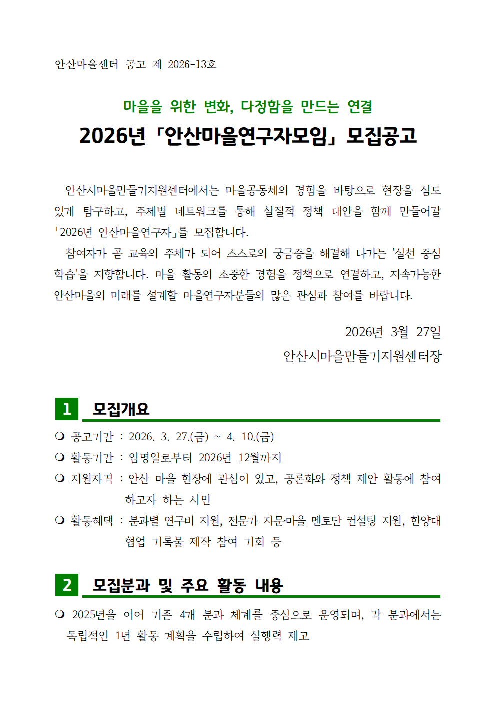 ※ 메일 제목과 파일명 : 2026안산마을연구자모임_OOO